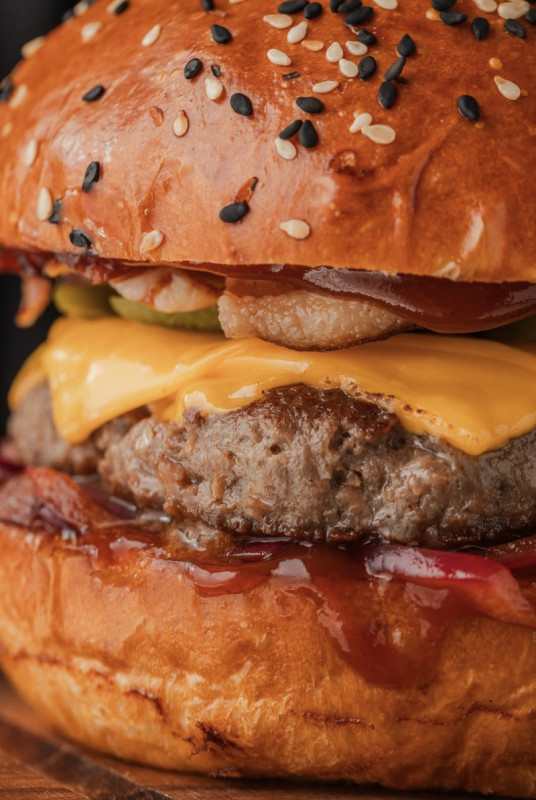 сир чеддер,яловича котлета,солоні огірки,томати,салат,соус